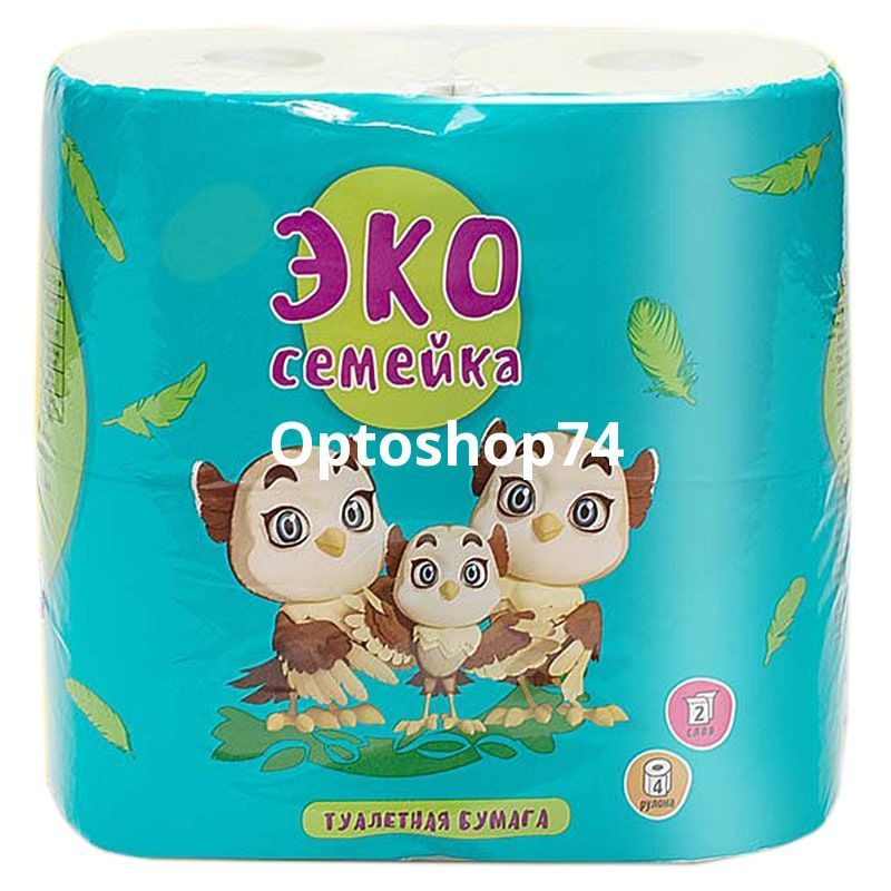 Туалетная бумага "Эко семейка " 4 рулона, 12 упаковок мешок, производство Набережные Челны. Купить туалетную бумагу "Эко семейка" оптом с доставкой.