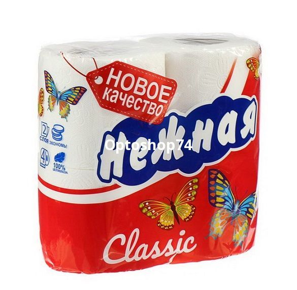 Бумага туалетная "Нежная" классик 4 рулона 2 слоя, 100% целлюлоза произодство г. Киров.