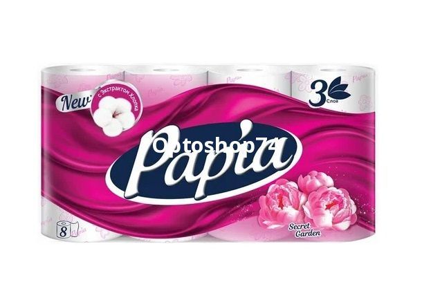 Туалетная бумага арома Papia Secret Garden 3 слоя 8 штук.
