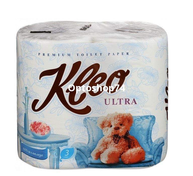 Туалетная бумага "Kleo" 3 слоя 4 рулона, мешок 18 упаковок. Купить туалетную бумагу "KLEO" оптом с доставкой.