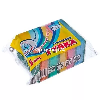 Губка для мытья посуды L- 5 "Мистер Бульк". Губка для посуды стандартная 5 штук. Купить губки для мытья посуды оптом с доставкой