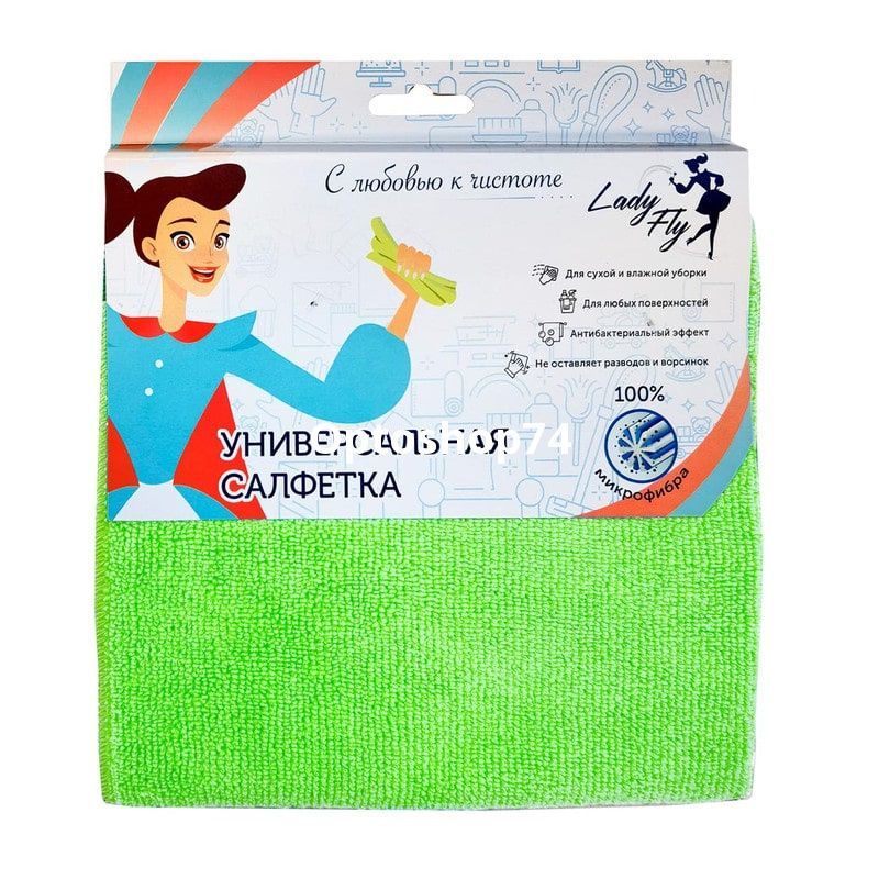 Салфетка универсальная из микрофибры Lady Fly (набор 3 штуки на блистере) для сухой и влажной уборки с антибактериальным эффектом.