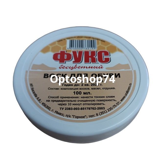 Воск для обуви Фукс бесцветный 100 мл в пластиковой банке.