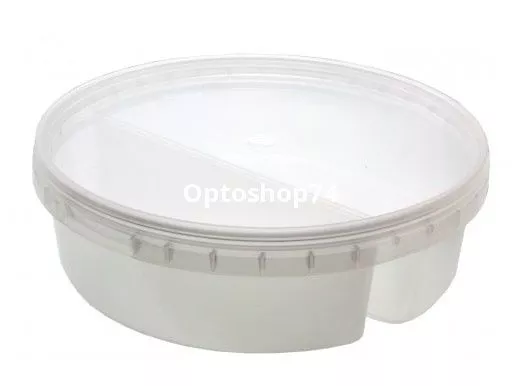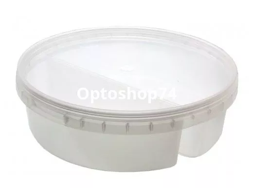 Банка прозрачная с крышкой 0,5 л круглая с перегородкой, производства Курган Пак. Объем 500 мл, диаметр: низ 133, верх 145; высота 41 мм. Количество в упаковке: банки 160, крышек 320 штук. Купить контейнер Курган-Пак оптом. Купить банку пищевую одноразовую с доставкой.