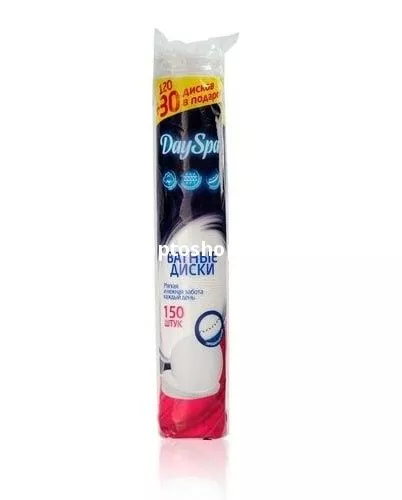 Ватные диски "DaySpa" 150 штук (120 штук + 30 штук в подарок) в упаковке, прошитые 100% хлопок.