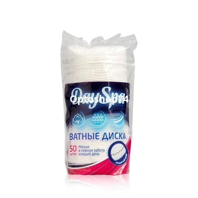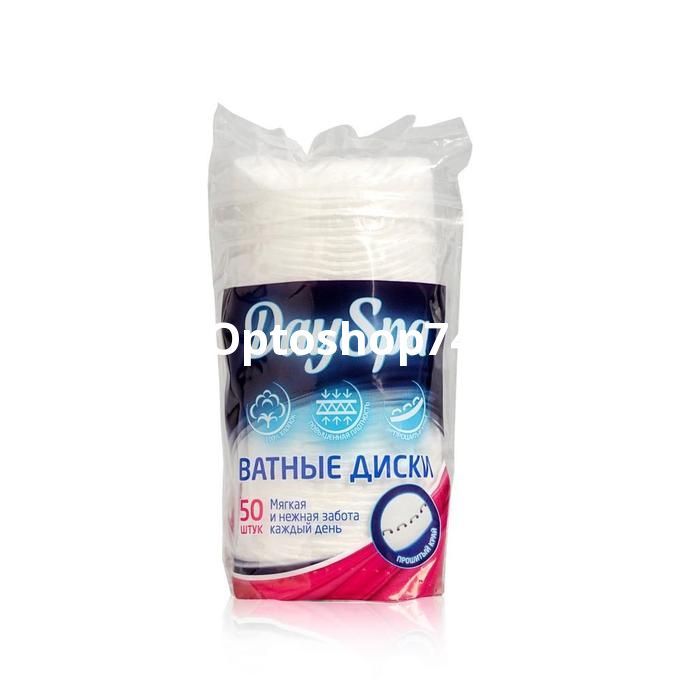 Ватные диски "DaySpa" 50 штук в упаковке, прошитые 100% хлопок.