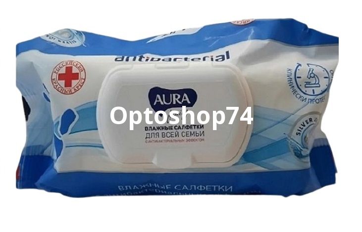 Влажные салфетки Aura антибактериальные для всей семьи (180 шт) с клапаном. Купить влажные салфетки оптом с доставкой