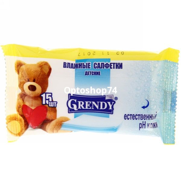 Влажные салфетки детские Гренди 15 штук в упаковке, коробка 120 штук. Влажные салфетки купить оптом.