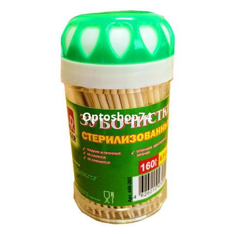 Зубочистки в пластиковой банке с удобной поворотной крышкой 160 штук, упаковка 12 баночек. Купить зубочистки оптом с бесплатной доставкой