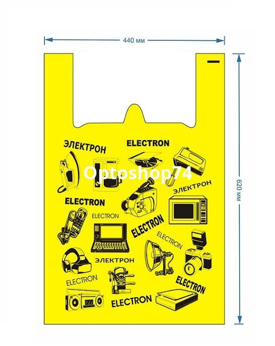 Купить пакет майка желтая Электрон, производства, вес упаковки 1200 г, в упаковке 100 штук, мешок 10 упаковок.