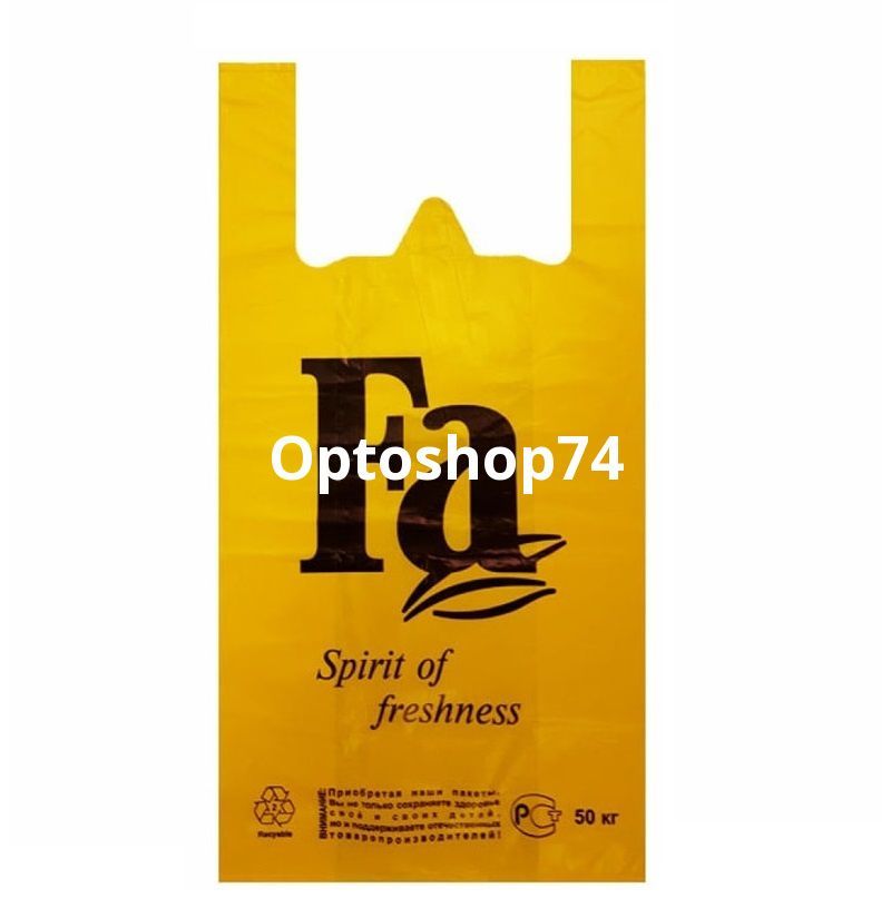 Купить пакет майка желтая Fa, производства Солпласт, в упаковке 100 штук, мешок 10 упаковок.