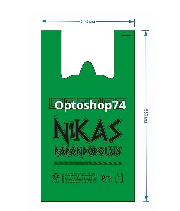 Пакет майка Nikas зеленая ПНД 300+160х550 20 мк, пачка 100 штук, мешок 10 пачек 1000 штук, производство Союз-пакет. Купить пакет майку оптом