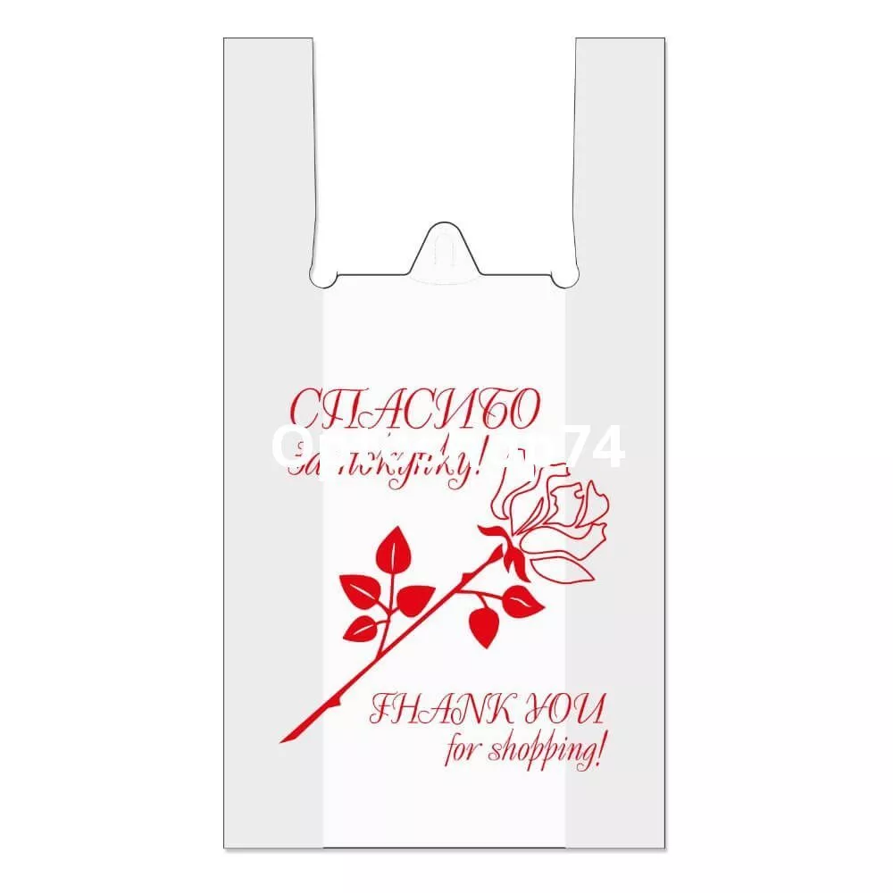 Купить пакет майка белая "Спасибо за покупку" 280+160*530 12мк производства Союз-пакет, в упаковке 100 штук, мешок 20 упаковок. Купить пакет майку оптом с бесплатной доставкой на Optoshop74.