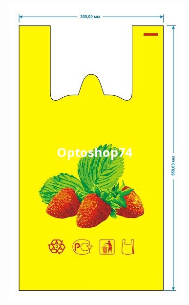 Купить пакет майка желтая Ягода, производства Солюз-пакет, в упаковке 100 штук, мешок 10 упаковок. Купить пакет майку оптом с бесплатной доставкой на Optoshop74.