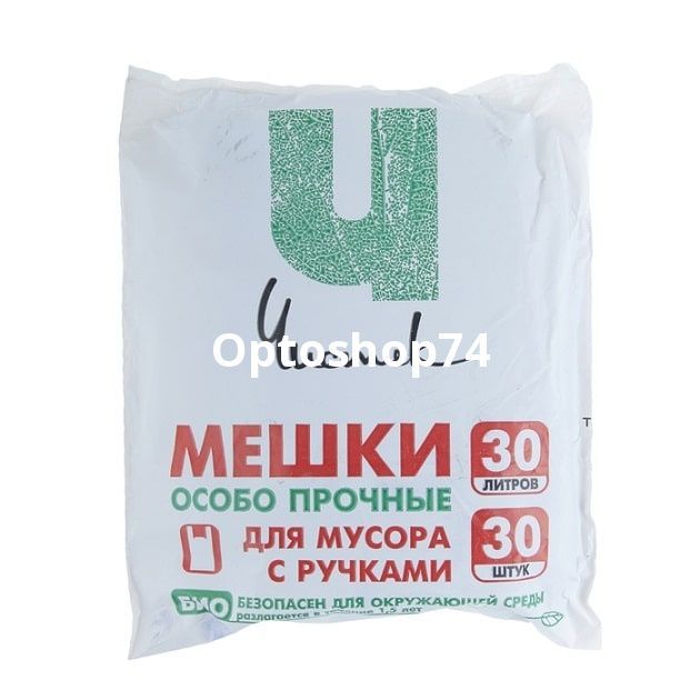 Мешки для мусора 30 литров с ручками Чистяк,производство УБпластик, 30 штук в упаковке. Купить мусорные мешки с ручками 30 литров. Купить мусорный пакет оптом на Optoshop74 c доставкой.