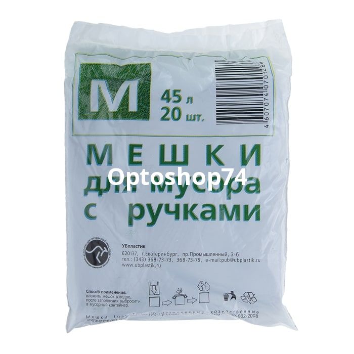Мешки для мусора 45 литров с ручками УБпластик, 20 штук в упаковке. Купить мусорные мешки с ручками 45 литров. Купить мусорный пакет оптом на Optoshop74 c доставкой.