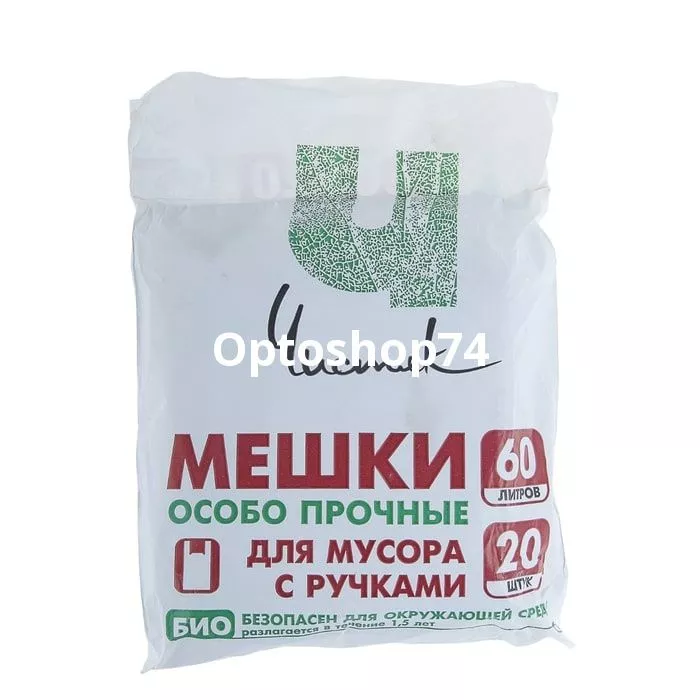 Мешки для мусора 60 литров с ручками Чистяк, 20 штук в упаковке. Купить мусорные мешки с ручками 60 литров. Купить мусорный пакет оптом на Optoshop74 c доставкой.