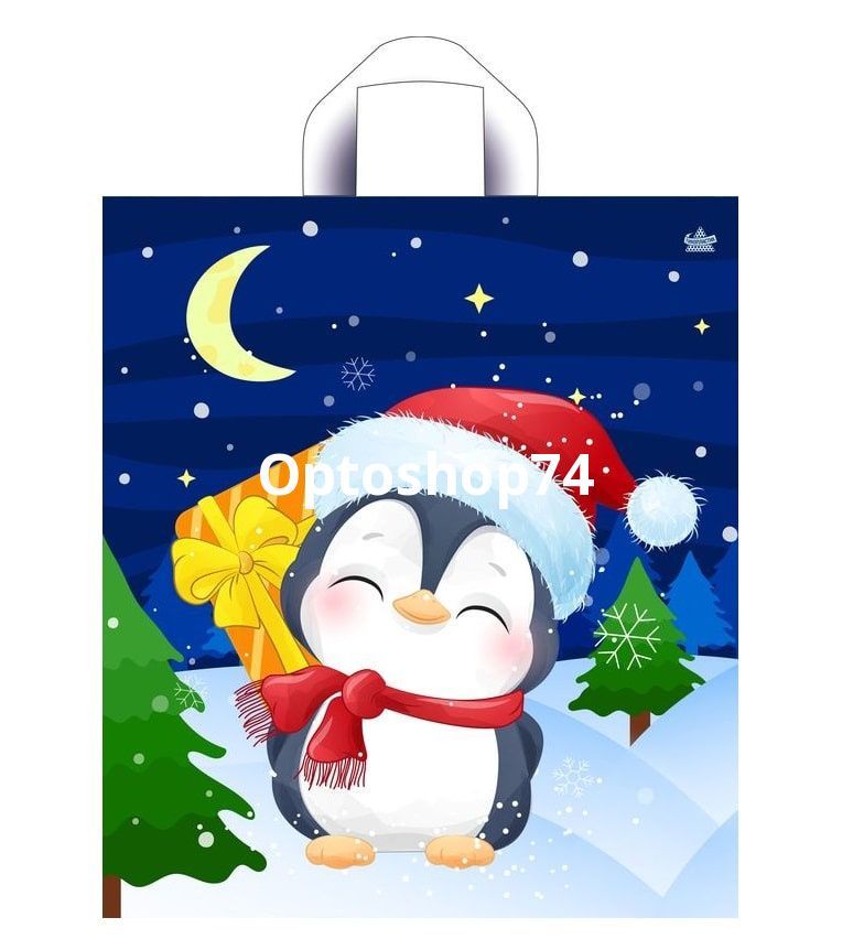Пакет выр. ручка 42*38 37мк "Сюрпириз от пингвина" (ТИКО).Пакет новогодний вырубная ручка 42*38 37мк, упаковка 50 штук. Купить новогодние пакеты оптом.