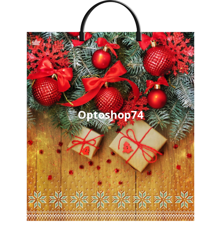 Пакет с пластиковой ручкой НГ 40*44 "Шарики на деревянном" (Тико). Купить новогодний пакет с пластиковой ручкой. Купить подарочный новогодний пакет