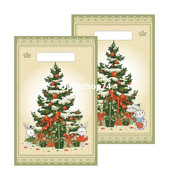 Пакет новогодний вырубная ручка 20*30 30мк, упаковка 100 штук.