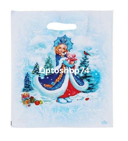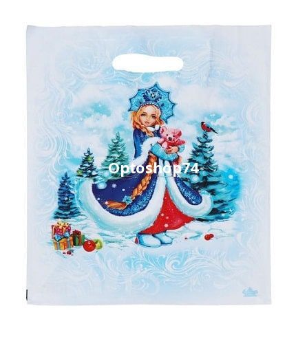 Пакет выр. ручка 31*40 30мк "Снегурочка в лесу" .Пакет новогодний вырубная ручка 31*40 30мк, упаковка 50 штук. Купить новогодние пакеты оптом.