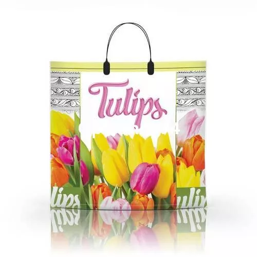 Купить пакет с пластиковой ручкой 36*34 см 90 мк "Тюльпаны" производства Люкспласт