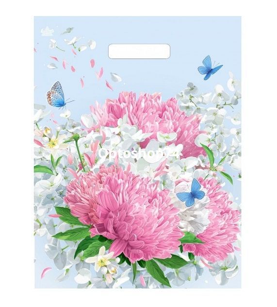 Купить пакет с вырубной ручкой Нежная хризантема 31*40 30мк производства Тикопластик, упаковка 50 штук.