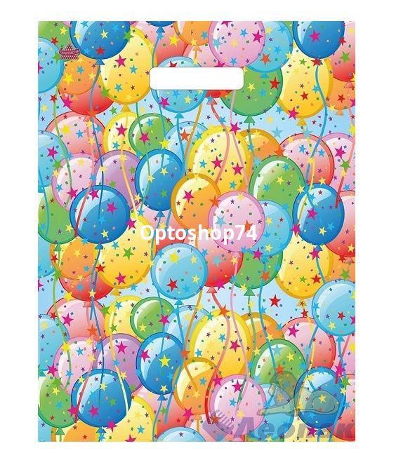 Купить пакет с вырубной ручкой Воздушные шарики 31*40 30мк производства Тикопластик, упаковка 50 штук.