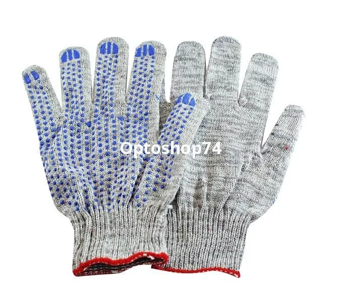 Перчатки х/б с ПВХ 10 класс 5 нитей серые, упаковка 10 пар, мешок 30 упаковок, 300 пар.