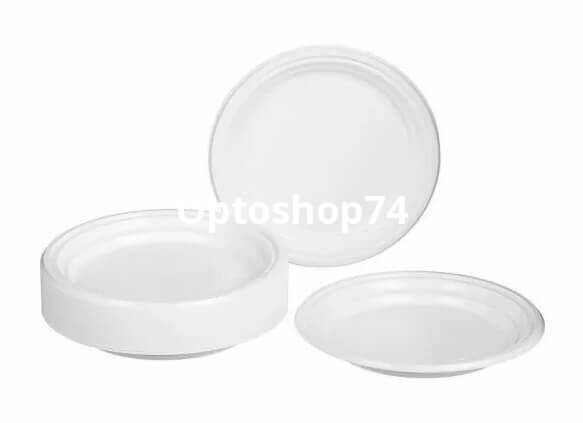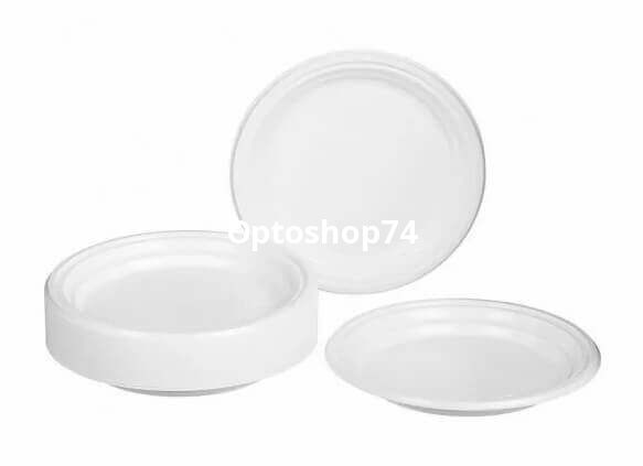 Тарелка одноразовая десертная диаметр 205 мм белая, производства г. Чайковский, упаковка 50 штук, коробка 42 упаковки. Купить тарелки одноразовые оптом
