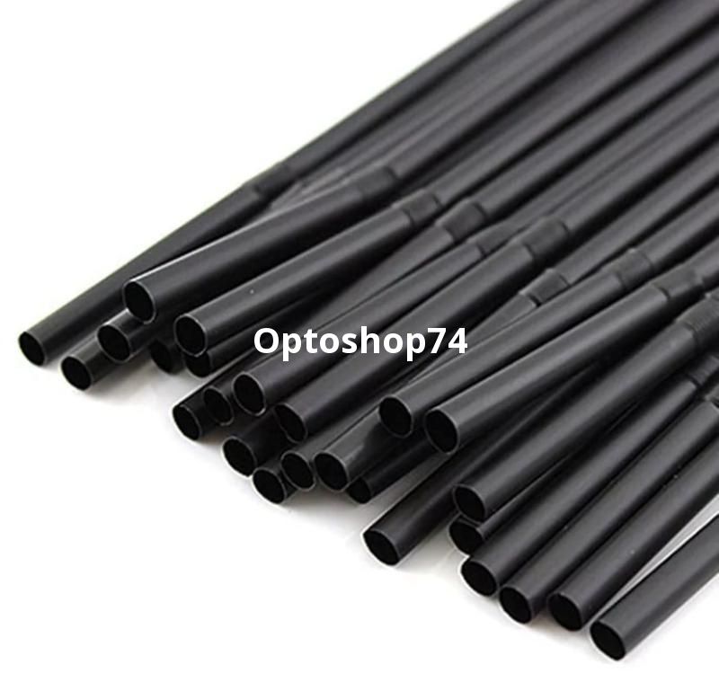 Трубочки для коктейля черные с изгибом 50 штук в упаковке